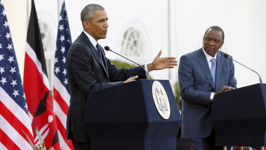 -Le président américain, en visite officielle au Kenya, la première pour un président américain en exercice, a pris sans équivoque la défense des droits des homosexuels devant son homologue kenyan, Uhuru Kenyatta, président d’un pays où les homosexuels sont stigmatisés. Les deux dirigeants ont également eu l’occasion d’aborder plusieurs crises régionales, notamment le Burundi, le Soudan du Sud et les shebabs somaliens. Le président américain quitte le Kenya dimanche soir pour l’Ethiopie.